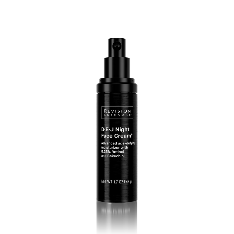 D·E·J Night Face Cream® is an intensive nighttime moisturizer that features a unique combination of time-released 0.25% Retinol and plant-based Bakuchiol in a hydrating, antioxidant-rich formula that minimizes irritation and can be used on all skin types to rejuvenate and reveal new, younger-looking skin overnight.